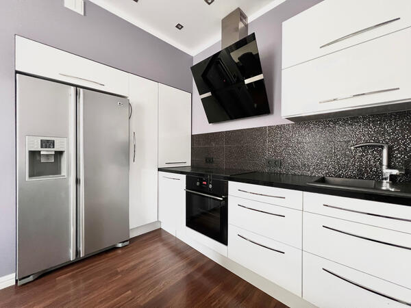 L O K A L I Z A C J ANieruchomość położona jest przy ul. Prądzyńskiego, na poznańskiej Wildzie. Ostatnie inwestycje w infrastrukturę w tej okolicy sprawiły, że jest to miejsce estetyczne, bezpieczne i doskonale skomunikowane. Znajdziesz tu wiele klimatycznych knajpek, lokalnych sklepów, niszowych biznesów. Wilda swoją aurą przyciąga młodych ludzi i jest modnym miejscem do życia.N I E R U C H O M O Ś ĆPo wejściu do mieszkania znajdujemy się w korytarzu. Jest tu miejsce na okrycie wierzchnie dla gości. W głębi znajduje się duża szafa z pralką. Tuż przy wejściu, po prawej stronie, mieści się garderoba z bardzo dużą szafą. Jest to widne pomieszczenie z oknem. Kolejne dwie pary drzwi prowadzą do dwóch niezależnych sypialni podobnej wielkości. Wschodnia ekspozycja pozwala na dobre funkcjonowanie z rytmem dobowym. Rano budzą nas wpadające przez okna promienie Słońca. To bardzo ustawne, ciepłe i jasne pomieszczenia. Niezwykły klimat może nadać odsłonięcie drewnianego parkietu. Na szczycie korytarza znajduje się łazienka wyposażona w wannę z prysznicem. Charakteru dodaje jej nieoczywisty kaloryfer. Po lewej stronie od wejścia znajdują się drzwi do salonu. Zachodnia ekspozycja sprawia, że jest tu jasno do samego końca dnia. Główną ścianę pokoju zdobi sztukateria. Przechodząc przez wydzieloną strefę jadalnianą, docieramy do otwartej kuchni. Strefa jest w pełni wyposażona w sprzęty AGD: zmywarka, lodówka z zamrażarką, płyta indukcyjna, piekarnik, okap.